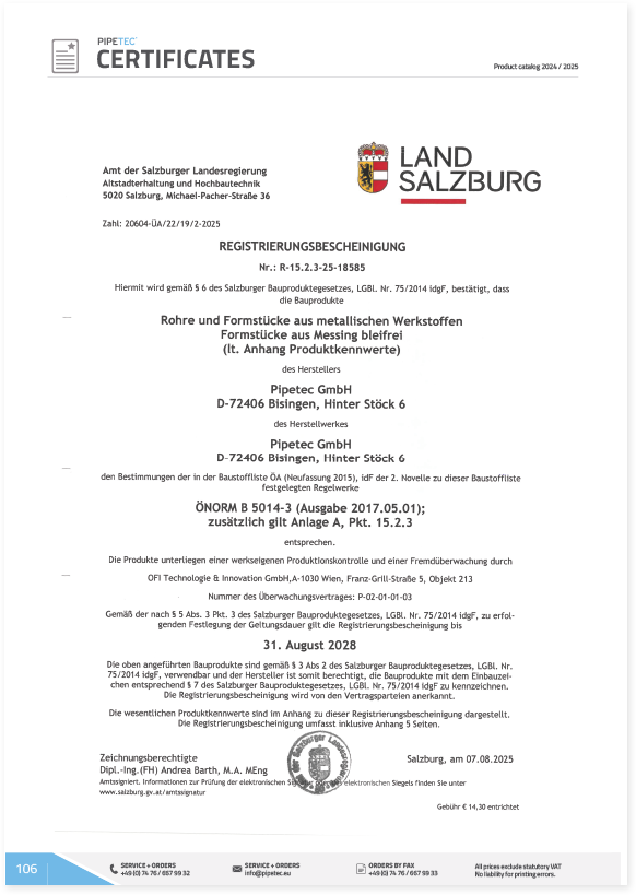 CERTIFICATES FOR PIPETEC PIPES AND FITTINGS